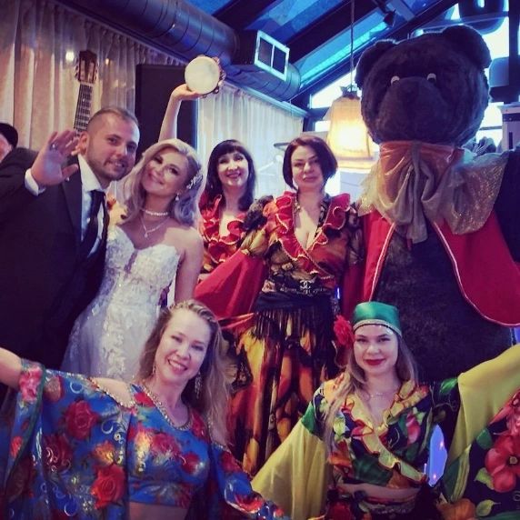 Цыганский ансамбль "Хор Ляли Пшеничной" на свадьбе в бруклинском ресторане "Дом Горячей Картошки". В поздравлении молодожёнов приняли участие танцоры, певцы, музыканты и медведь (ростовая кукла). Russian-Gypsy show at the wedding in Brooklyn.