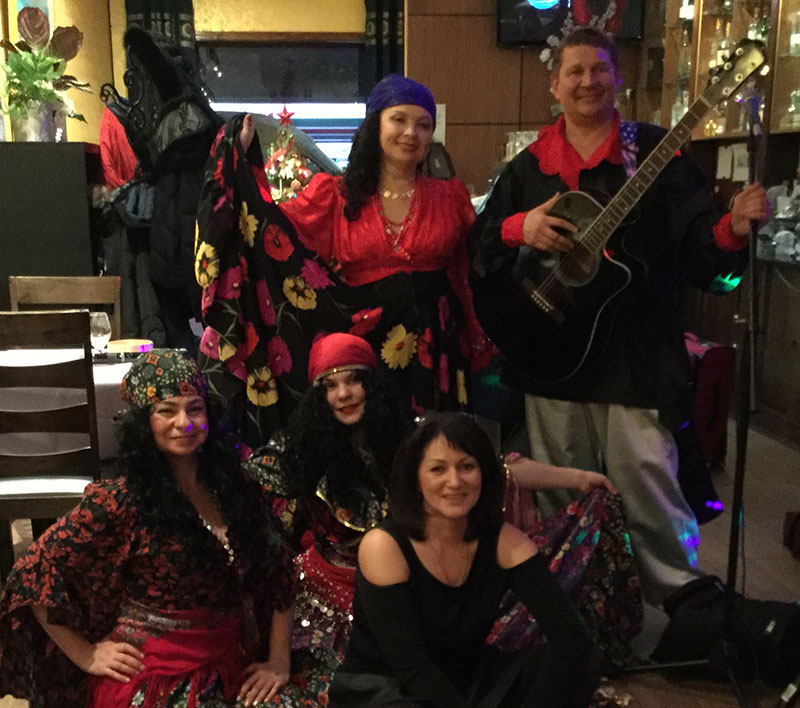 Brooklyn based live music, song and dance "Gypsy Spirit" group provided one hour show during birthday party on Saturday, January 7th, 2017 from 7 to 8pm at the Cafe Gallery, 2801 Coney Island Ave, Brooklyn, NY 11235 (Coney Island, Brooklyn, New York). The program of performance included following songs and dances: "Шатрица", "За дружеской беседою", "Эй, ямщик, гони-ка к Яру", "Мохнатый шмель", "Цыганская фантазия" (инструментальный номер), "Не будите", "Нанэ Цоха", "Две гитары", "Чардаш" (инструментальный номер), "Бирюзовые златы колечки", "Как цветок душистый" (цыганская величальная), "Только раз" (романс), "Пропил Мишка", "Что мне горе", "Gypsy Medley" (Попурри), "Сердце на снегу", "Мы на лодочке катались", "Очи чёрные" и "Дорогой длинною". The company is available for hire in New York City, Long Island, Brooklyn, Queens, Staten Island, New York, New Jersey, and Connecticut.